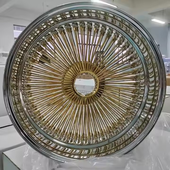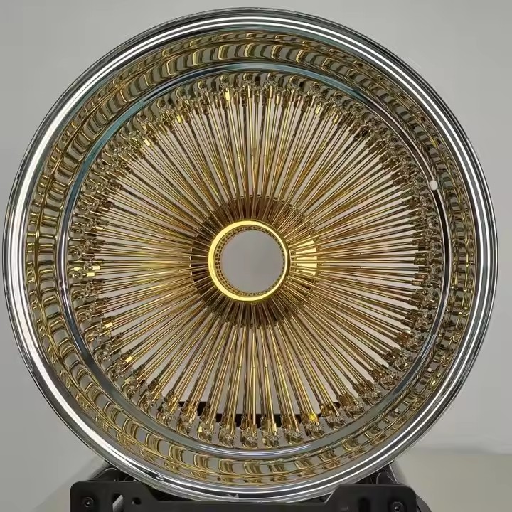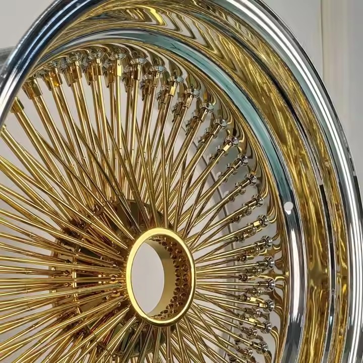 Hot Sale Steel Wheel Rims 13x7 72 Straight Lace Reverse Triple Gold 13 14 Inch 72 Spokes Chrome Spoke Wire Wheels For Old Cars