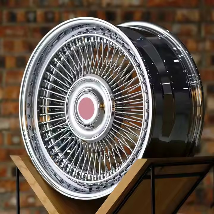 Hot Sale Steel Wheel Rims 13x7 72 Straight Lace Reverse Triple Gold 13 14 Inch 72 Spokes Chrome Spoke Wire Wheels For Old Cars