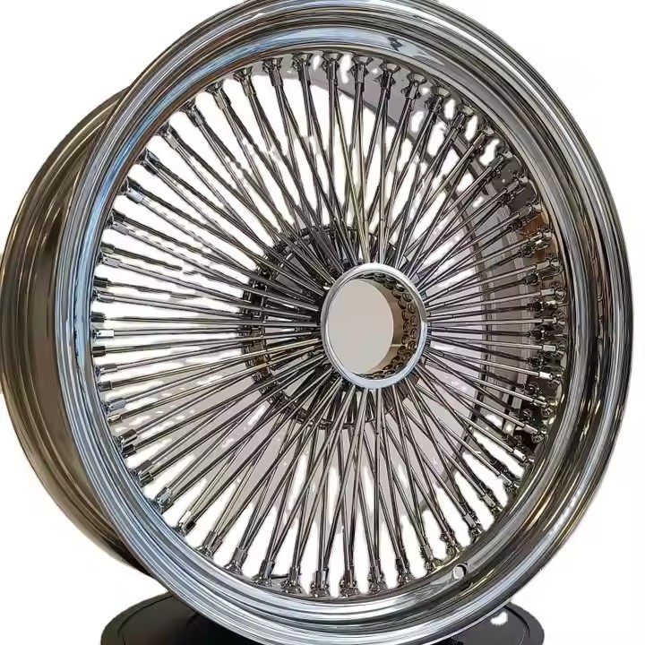 Hot Sale Steel Wheel Rims 13x7 72 Straight Lace Reverse Triple Gold 13 14 Inch 72 Spokes Chrome Spoke Wire Wheels For Old Cars
